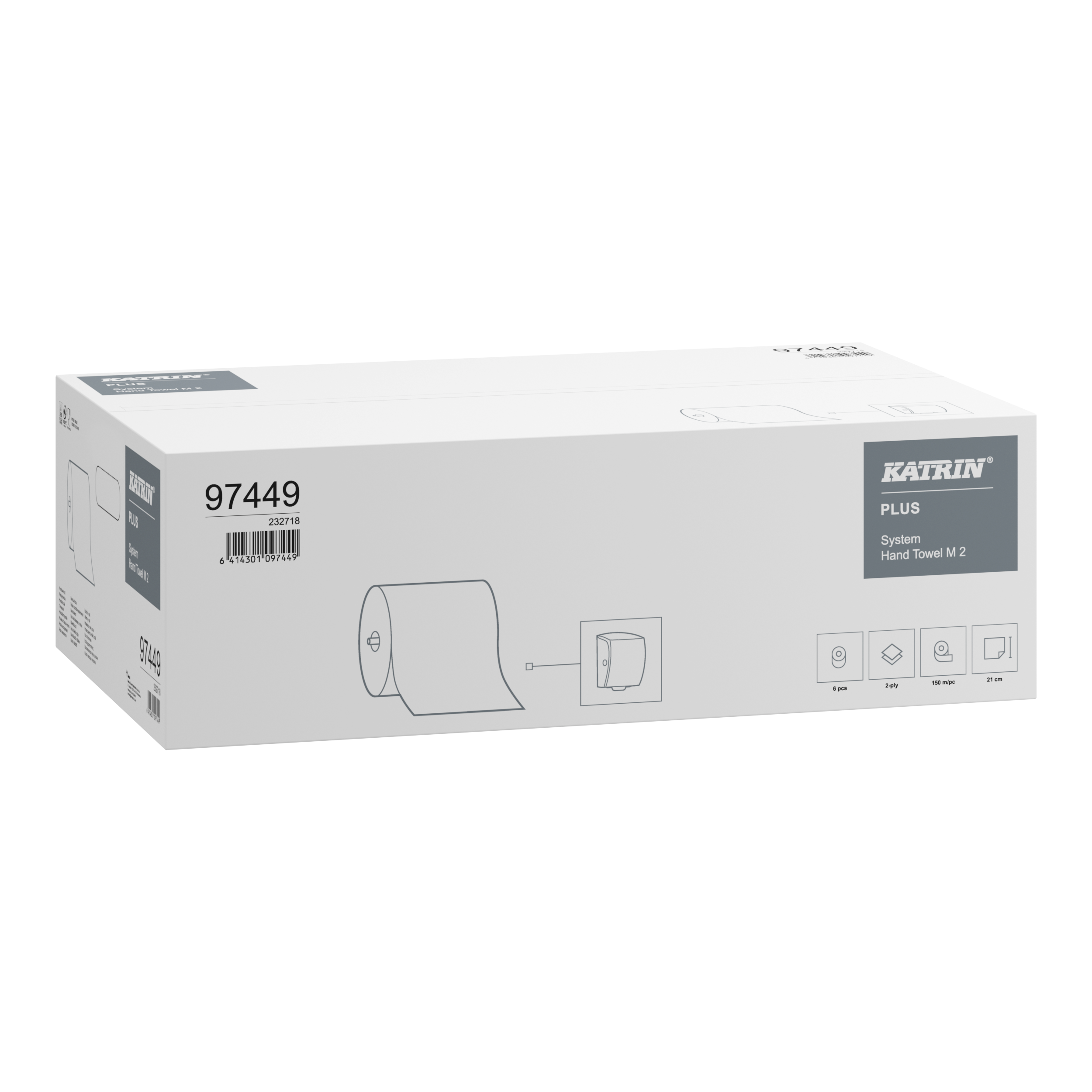 Papírový ručník na roli s obvodovým odvíjením do systémových zásobníků s řezací lištou KATRIN SYSTEM.Cena uvedena za 1 roli. KARTON OBSAHUJE 6 rolí - MINIMÁLNÍ ODBĚROVÉ MNOŽSTVÍ. Návin role 150 m. Výška role 210 mm. Průměr role 190 mm. Barva bílá. Počet vrstev 2. Balení 6 rolí / balení. Počet balení na paletě 36 balení/ paletě.