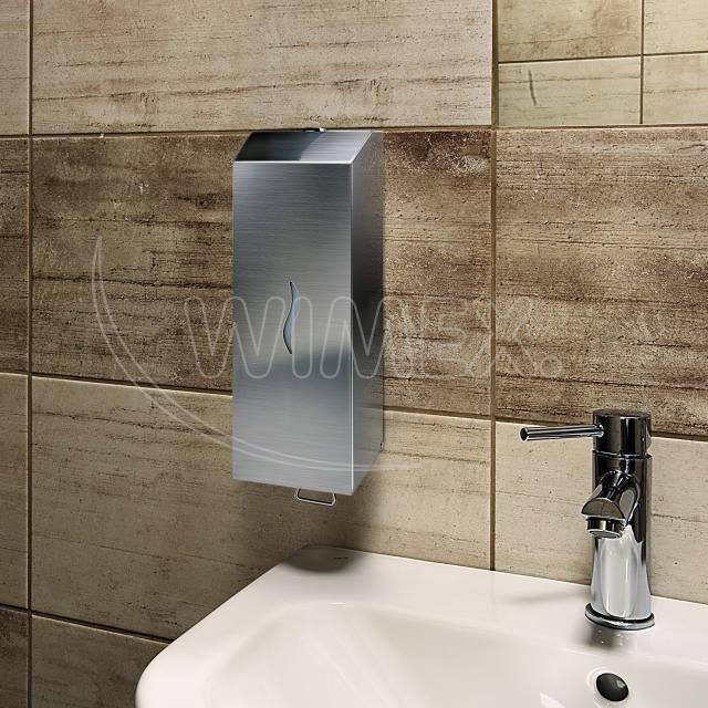Elegantní nerezový zásobník tekutého mýdla. Má luxusní vzhled a zároveň je velmi pevný a odolný proti poškození. Je vybaven zámečkem na klíček.
