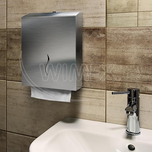 Elegantní nerezový zásobník na skládané ručníky ZZ. Má luxusní vzhled a zároveň je velmi pevný a odolný proti poškození. Je vybaven zámečkem na klíček.