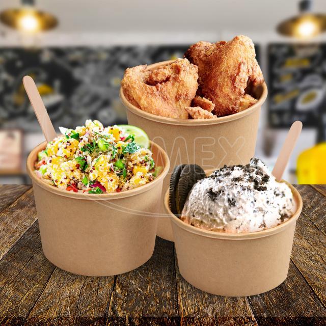 Miska papírová hnědá na polévku o objemu 500 ml je praktickým řešením pro balení a servírování široké škály pokrmů. Cena uvedena za 50 ks. Karton obsahuje 18 balení po 50 ks. Vhodná víčka naleznete pod kódem 9458.01