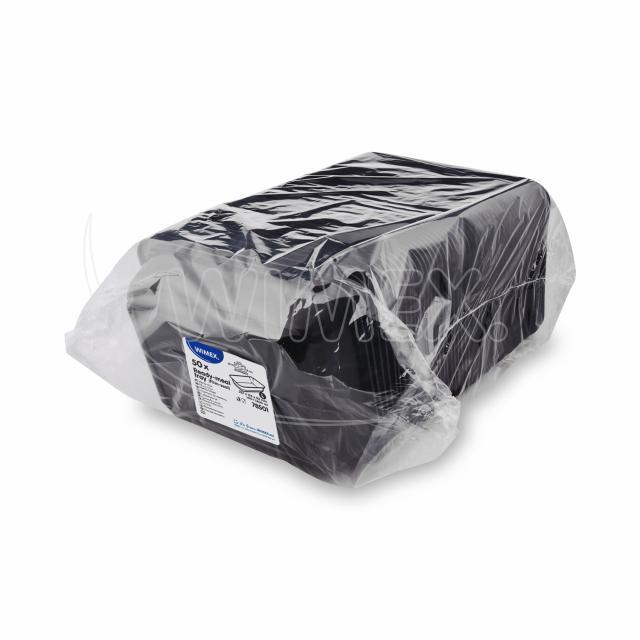 Menu mísy - pro zatavovací systémy - nedělené / černé / 227 x 178 x 50 mm / 50 ks. Pevné mísy z polypropylenu (PP), jenž odolává teplotám od -40 do +120 °C. Karton obsahuje 6 balení po 50 ks. Do zatavovacího stroje pod kódem 9661.01