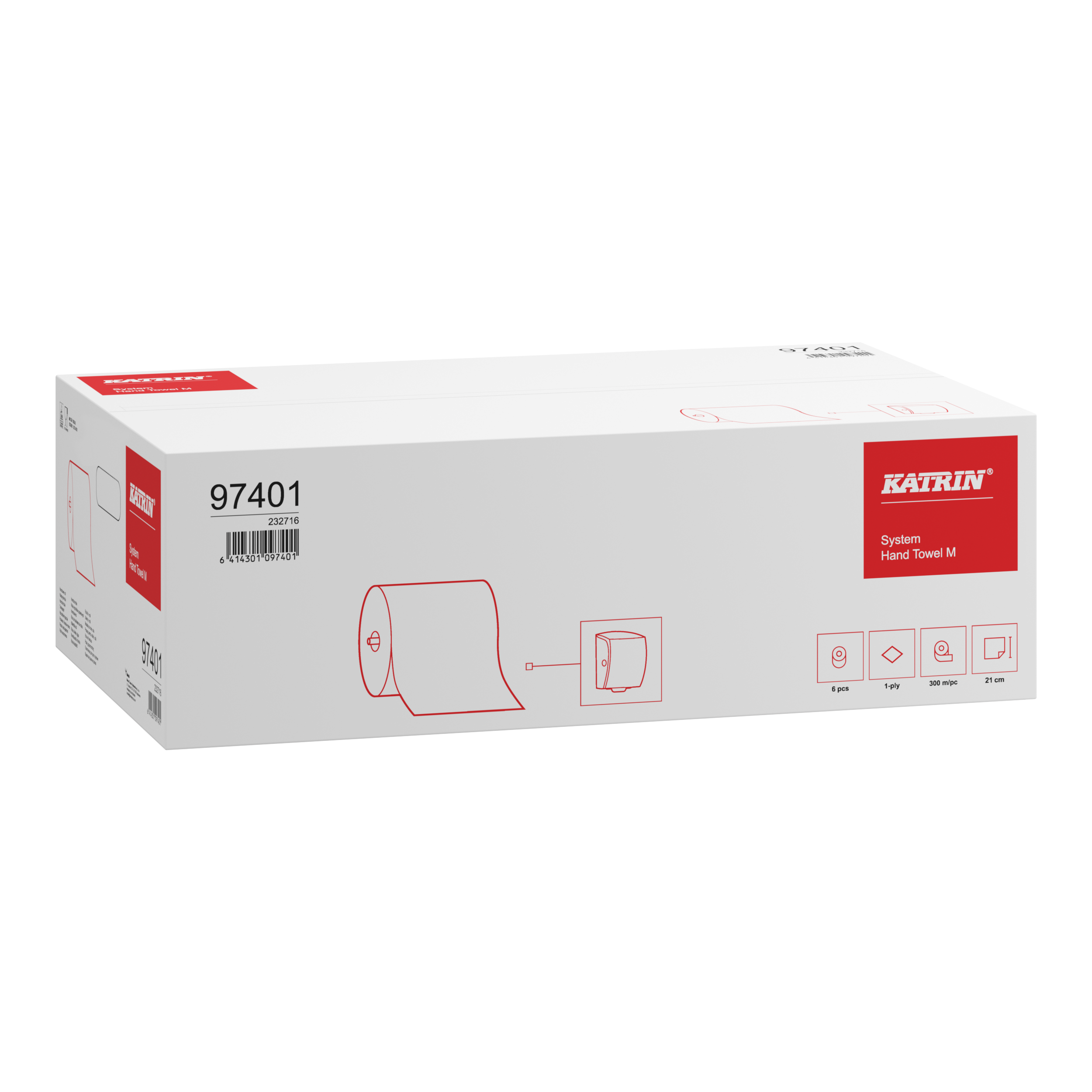 Utěrky papírové na roli Katrin System 100% celulóza M2 97401/83275,1-vrstvé / 300m / 1 role super bílý