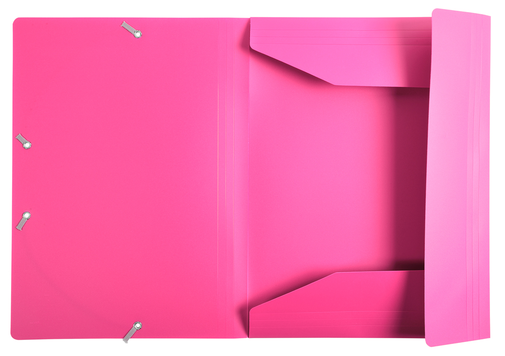 Kvalitní 3klopové spisové desky k uložení a přenosu dokumentů v atraktivních barvách s dvěmi uzaviratelnými gumičkami. Dokumenty jsou dokonale chráněny před nečistotami a vlhkem. Tištěné logo na přední straně. Formát A4 maxi umožňuje založit bez přesahu euroobaly, registry aj. formát A4 maxi rozměry: 240 x 320 mm materiál: PP, 400 μm kapacita: 150 listů papíru (80 g/m2) barva: růžová lehké, ohebné a odolné obsah balení: 1 ks